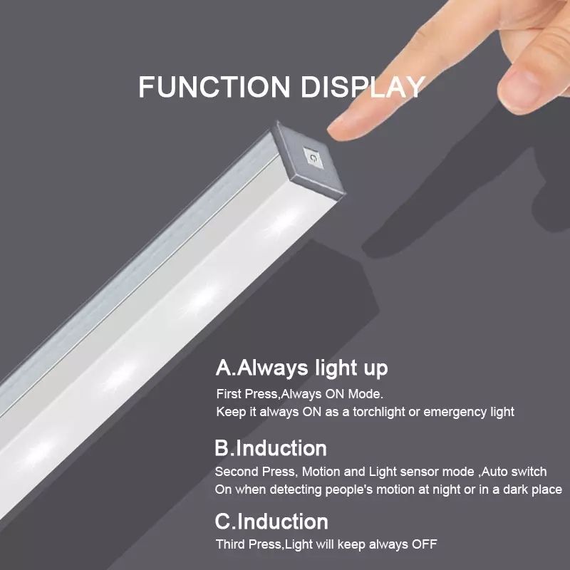 User-Friendly: As per your preference, this product is a wireless cabinet light that is easy to install and use, with a simple motion sensor that turns on the light when you enter the room and off when you leave.